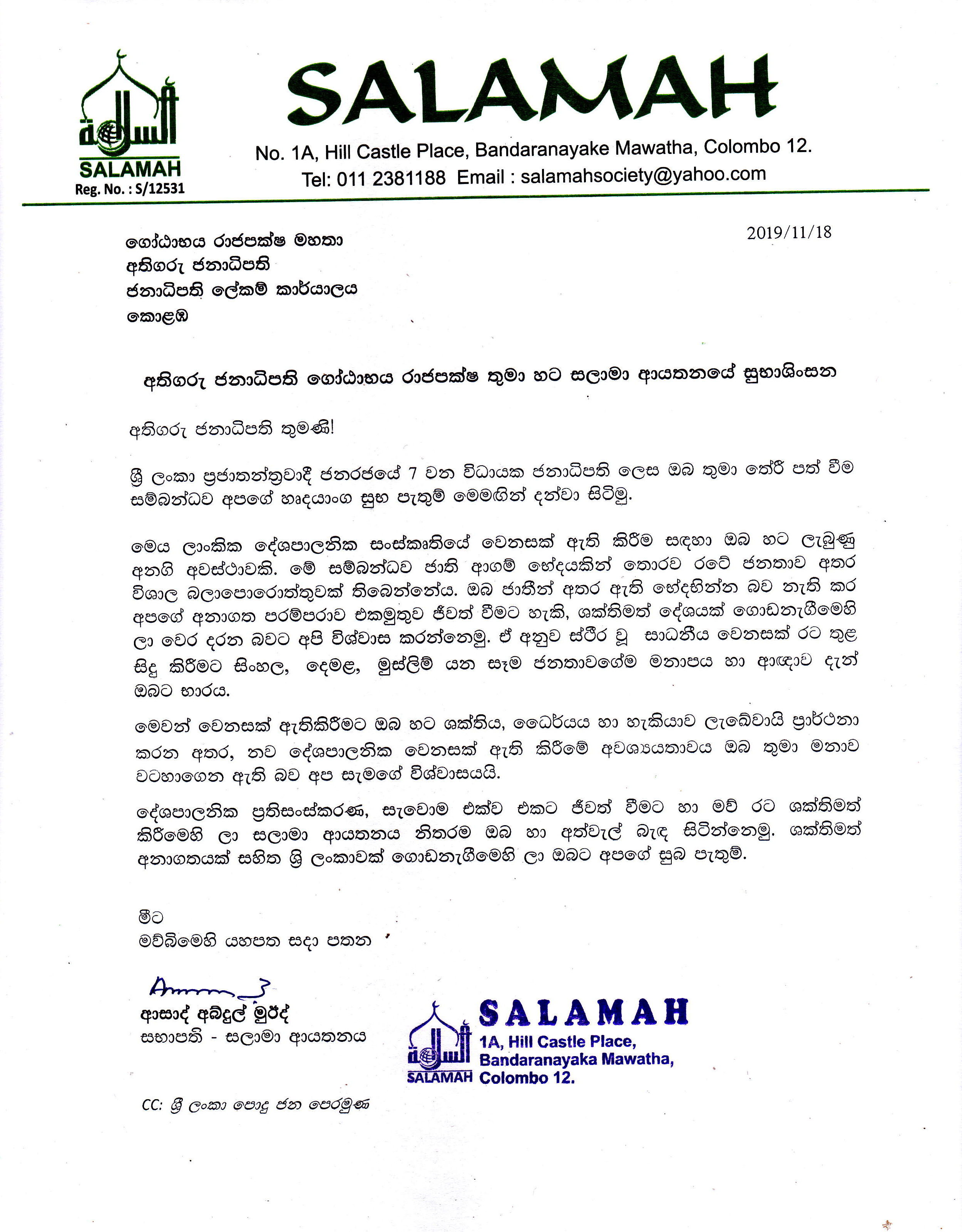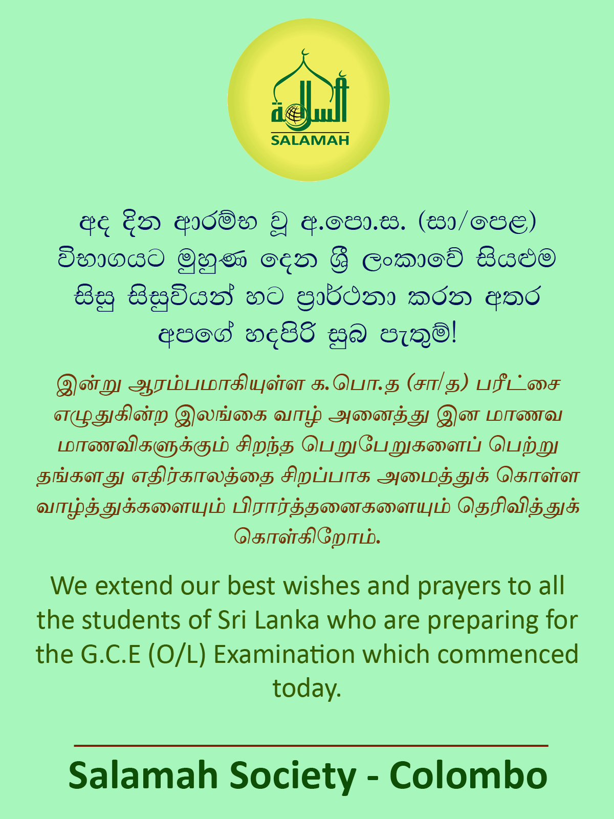 அமைதியான, ஆரவாரமற்ற சமூக சேவையாளராகவும், ஆசிரியராகவும், அதிபராகவும் பணி புரிந்த நாடறிந்த அறிவிப்பாளர் ஏ.ஆர்.எம். ஜிப்ரி அவர்களின் மறைவையிட்டு, ஸலாமா சொஸைட்டி தனது ஆழ்ந்த அனுதாபங்களைத் தெரிவித்துக் கொள்கிறது. அல்லாஹ்தஆலா இவரின் சேவைகளை ஏற்றுக்
